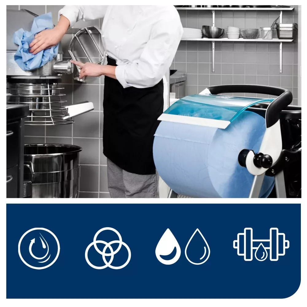Nagy kapacitású 2 rétegű törlő, mely ideális bármely higiéniai területre. A Tork általános célú törlőpapírjai között a legerősebb – hatékonyan szívja magába a vizet és az olajat és nedvesen is magas szakítószilárdsággal rendelkezik.