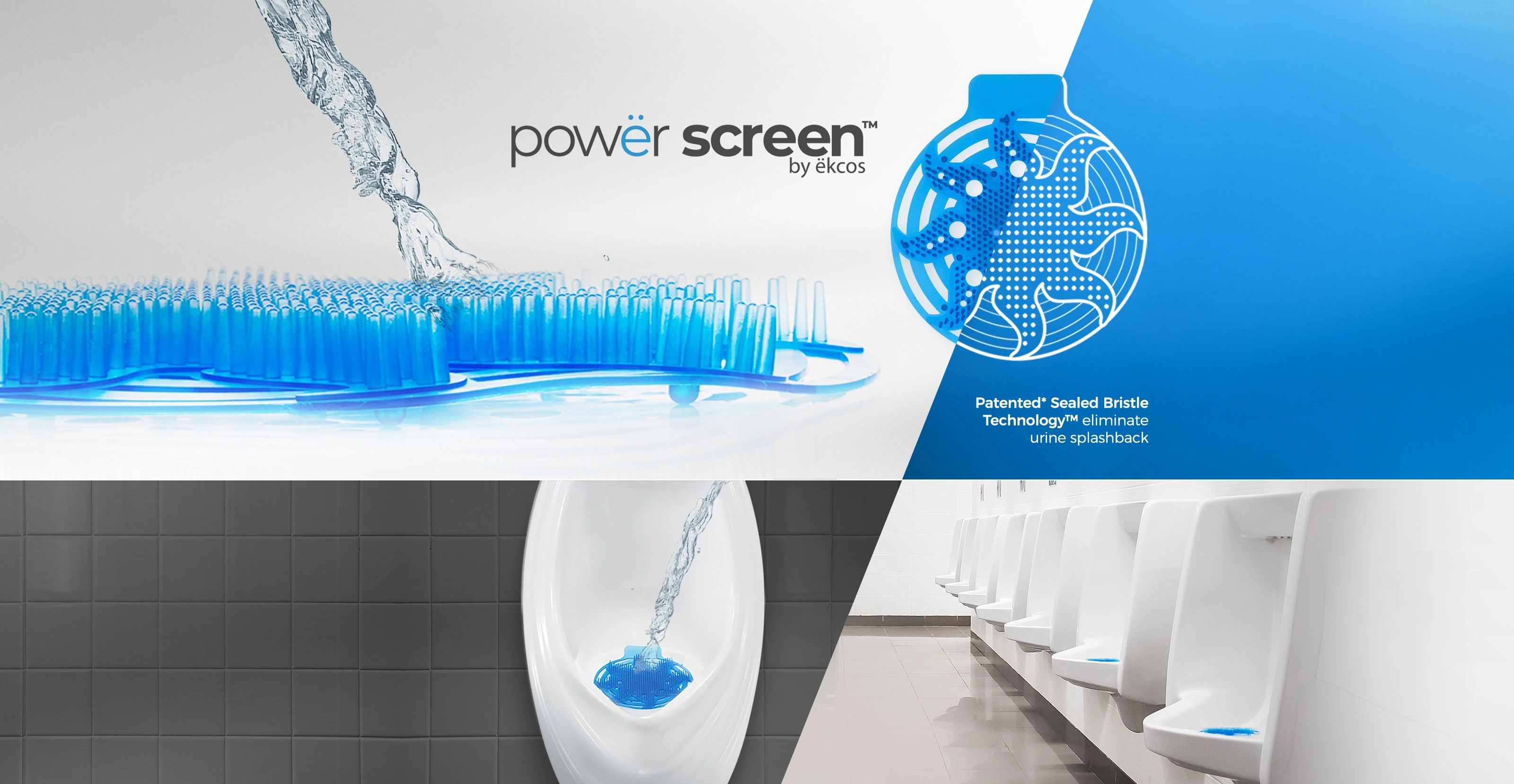 A Powerscreen egy illatosított piszoárszűrő, amelyet szabadalmaztatott sörterendszerének (Sealed Bristles Technology™) köszönhetően a vizeletfröccsenés minimalizálására terveztek, segítve megakadályozni a baktériumok és vírusok terjedését a piszoár körül. Saját fejlesztésű, dezodor alapú illatanyaggal átitatott anyagból készült, amely akár 30 napig tartó fokozatos illatkibocsátást biztosít.